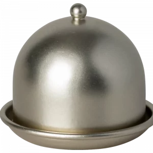 Cuidadosamente elaborada con gran atención al detalle, recrea a la perfección una diminuta pieza de queso bajo una quesera metálica, lista para despertar la imaginación.