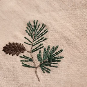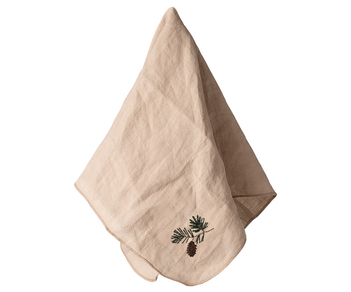 Esta servilleta está hecha de suave lino y cuenta con un precioso bordado. La ilustración es de Dorthe Mailil.