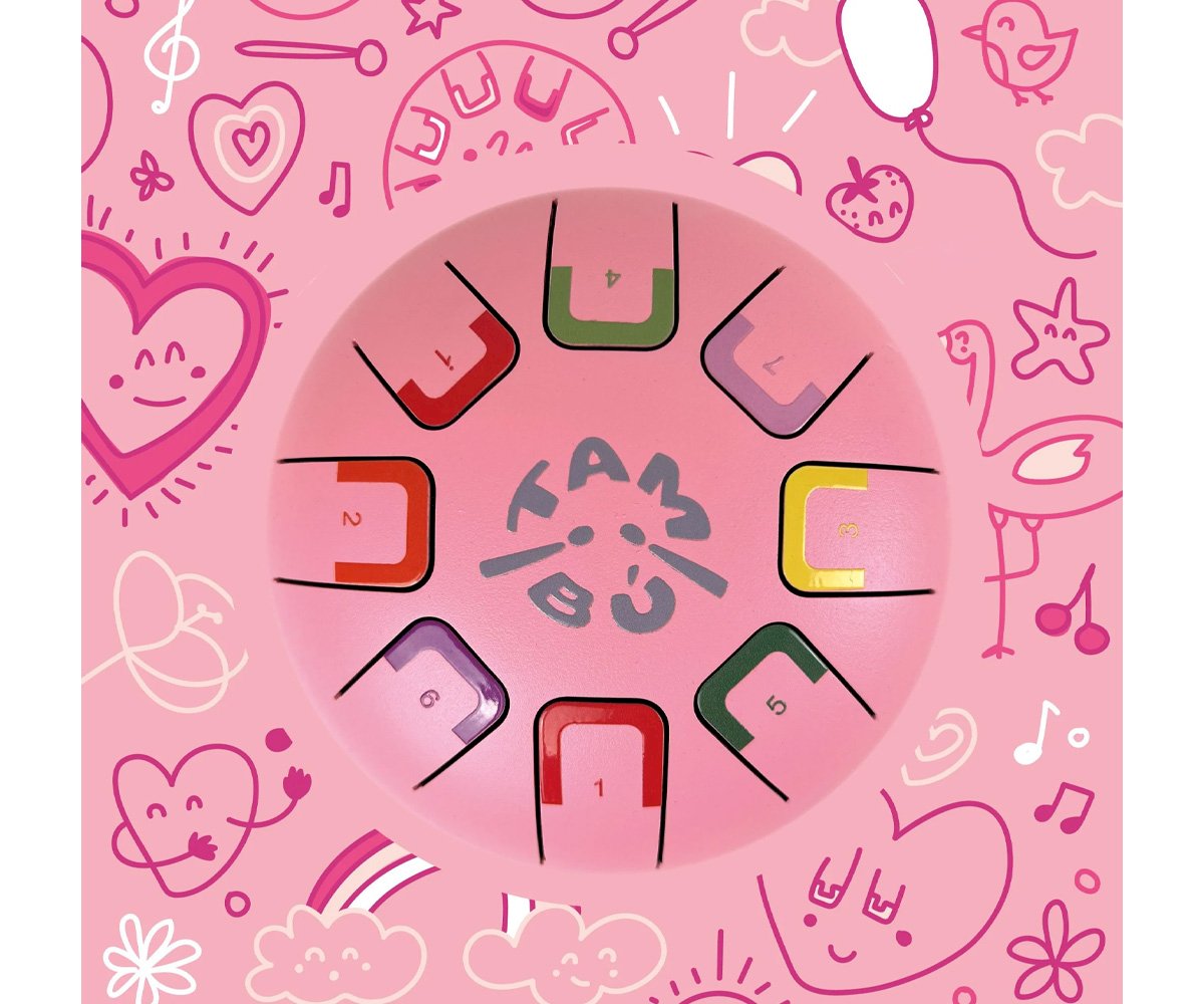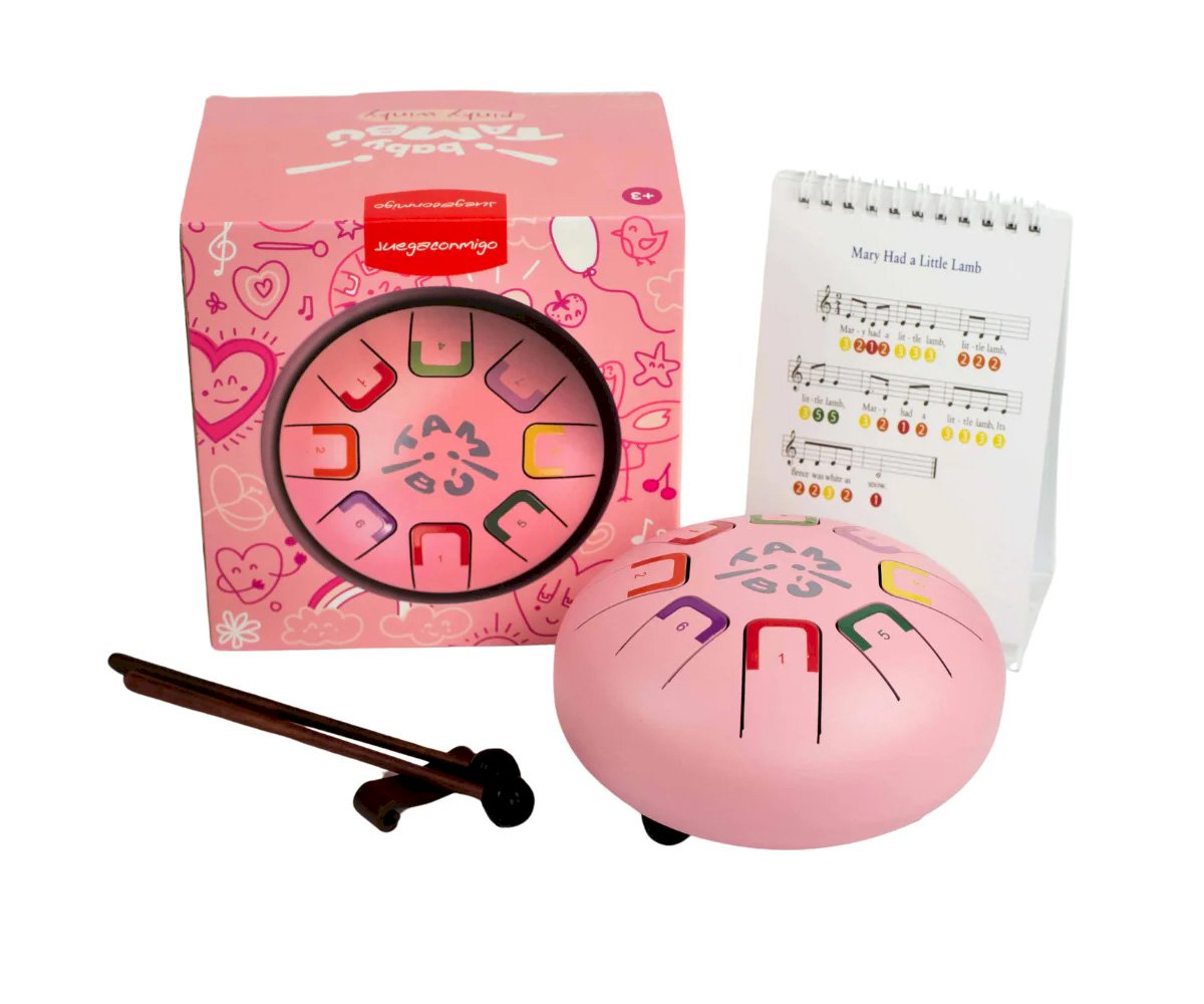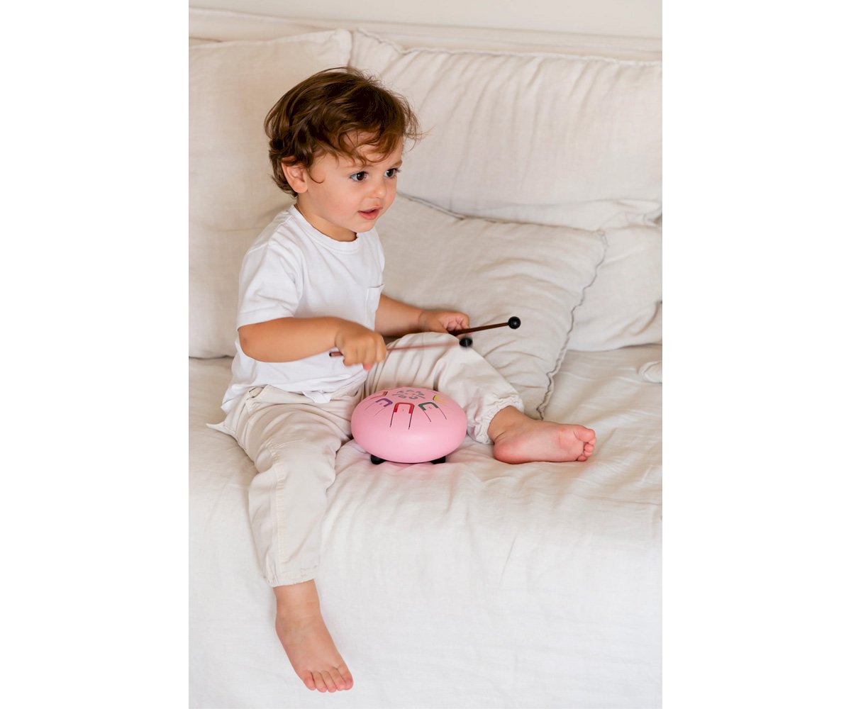 Especialmente diseñado para niños es compacto y tiene 8 notas diferenciadas por números y colores que emiten sonidos armónicos relajantes que se pueden tocar con baquetas, con las púas de dedos o con las manos y de cada manera se producirá una intensidad de sonido distinta.