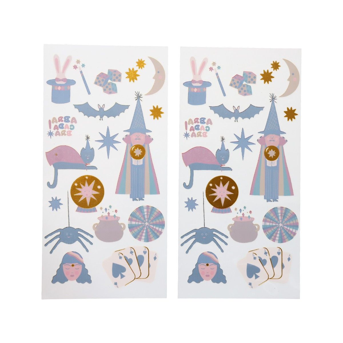 Abracadabra, ¡deja que la magia fluya! Este set de tatuajes temporales es una verdadera invitación a sumergirse en el misterioso y fascinante mundo de los magos.