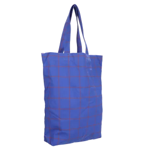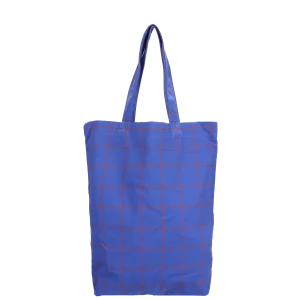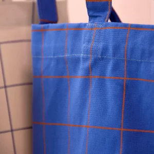 Una tote bag de algodón con estampado de cuadrícula.
