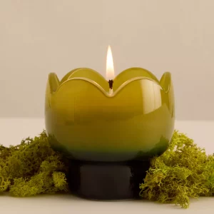 Envuelta en un elegante recipiente de vidrio en forma de tulipán, esta vela emite una luz cálida y acogedora, perfecta para crear un ambiente acogedor en cualquier espacio.